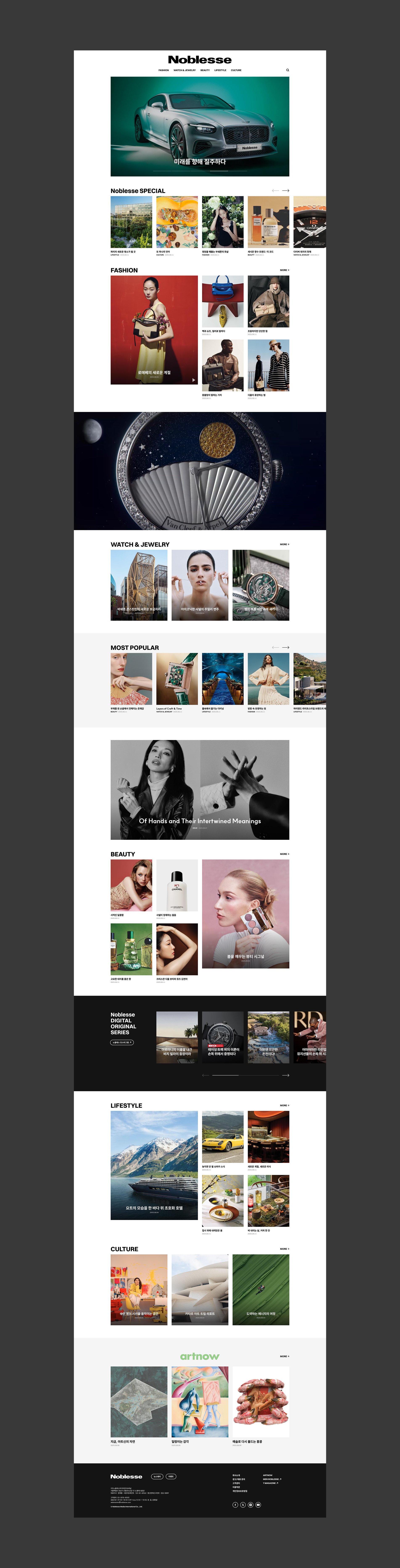 이번 리뉴얼의 방향은 그리드 시스템 기반의 모듈형 디자인을 확립하여, 파편화된 매거진 콘텐츠를 체계적인 시각 질서로 재정립하는 데 집중했습니다. 각 섹션별로 규격화된 모듈 구조는 방대한 정보를 직관적으로 전달하는 동시에, 하이엔드 브랜드에 걸맞은 절제된 여백과 미니멀한 UI를 통해 콘텐츠 본연의 임팩트를 극대화합니다. 사용자는 정돈된 레이아웃을 따라 시선의 끊김 없이 깊이 있는 아티클에 자연스럽게 도달하며, 이러한 심리스(Seamless)한 흐름은 단순한 정보 습득을 넘어 디지털 환경에서도 프리미엄 종이 매거진을 넘기는 듯한 감각적인 브라우징 경험을 선사할 것입니다.