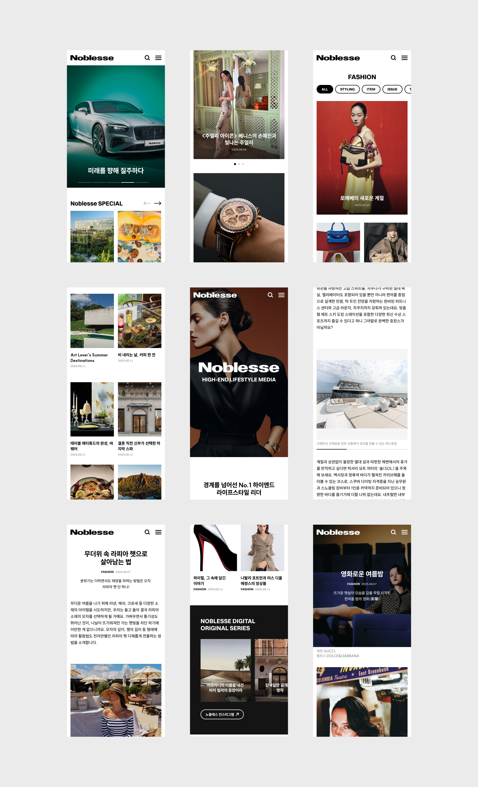콘텐츠의 고유 성격에 최적화된 총 8가지의 에디터 스타일을 정의하여, 아티클의 성향에 따라 텍스트 가독성과 비주얼 임팩트를 유연하게 조절하는 맞춤형 브라우징 경험을 설계했습니다. 이러한 전문화된 템플릿 시스템은 각 콘텐츠가 가진 서사 구조를 극대화하며, 사용자가 매번 새로운 아티클을 만날 때마다 노블레스만의 깊이 있는 프리미엄 가치에 온전히 몰입하게 만듭니다.